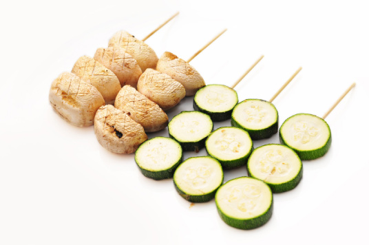 Soupe, Salade, Riz, 5 Brochettes (3 courgettes,2 champignons)