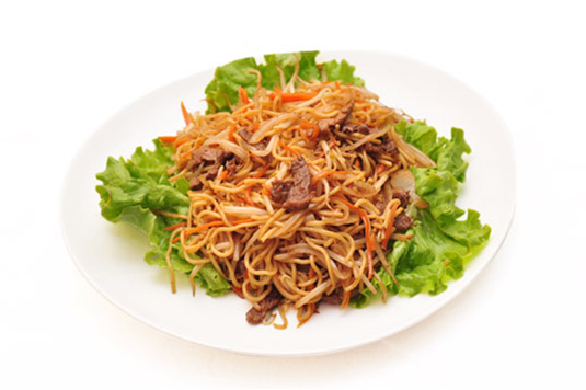 Menu nouille sauté au boeuf Soupe, Salade, Nouille sauté au boeuf et légume